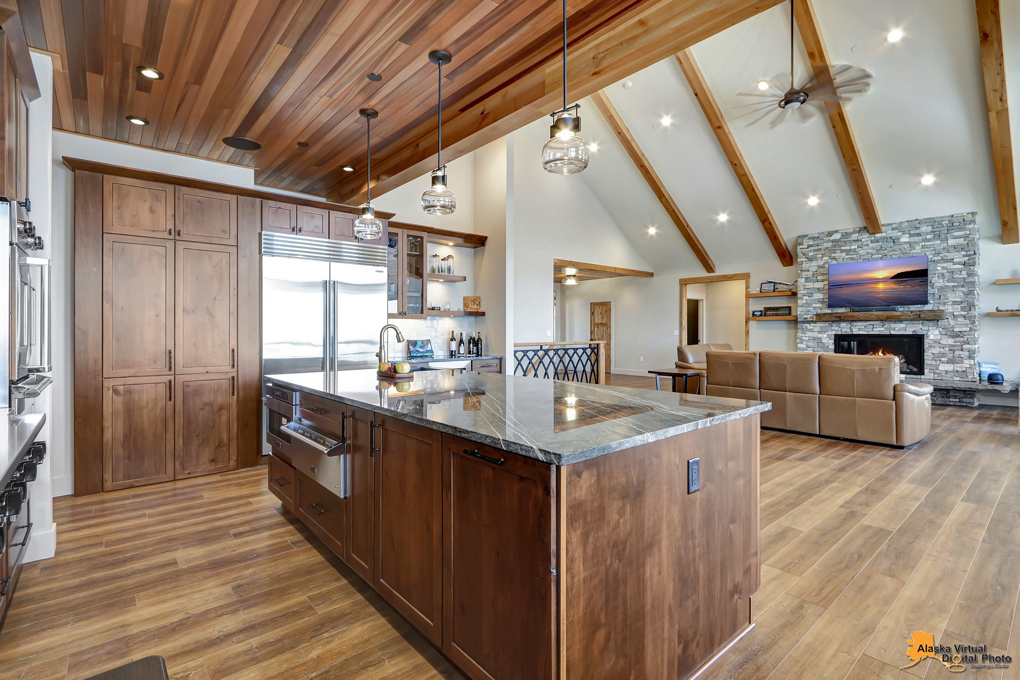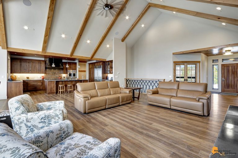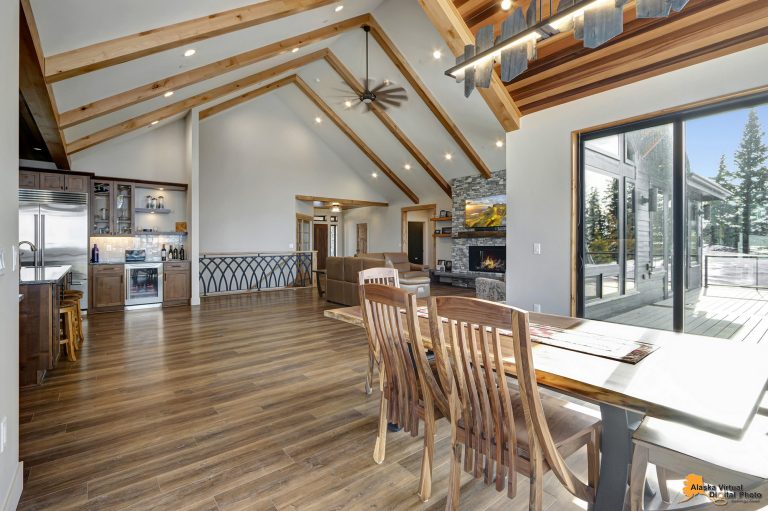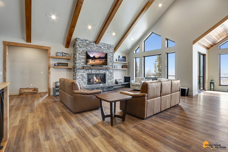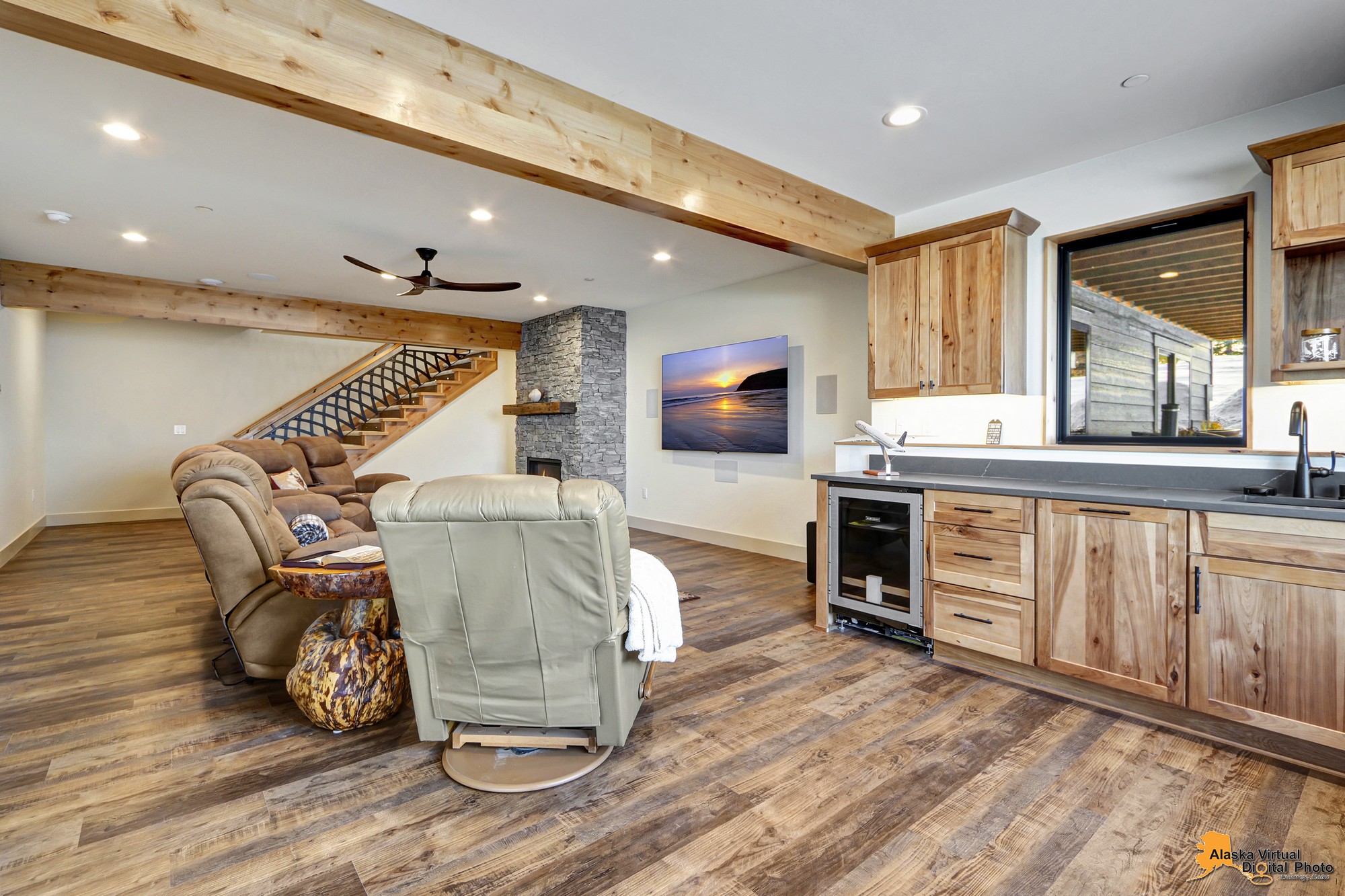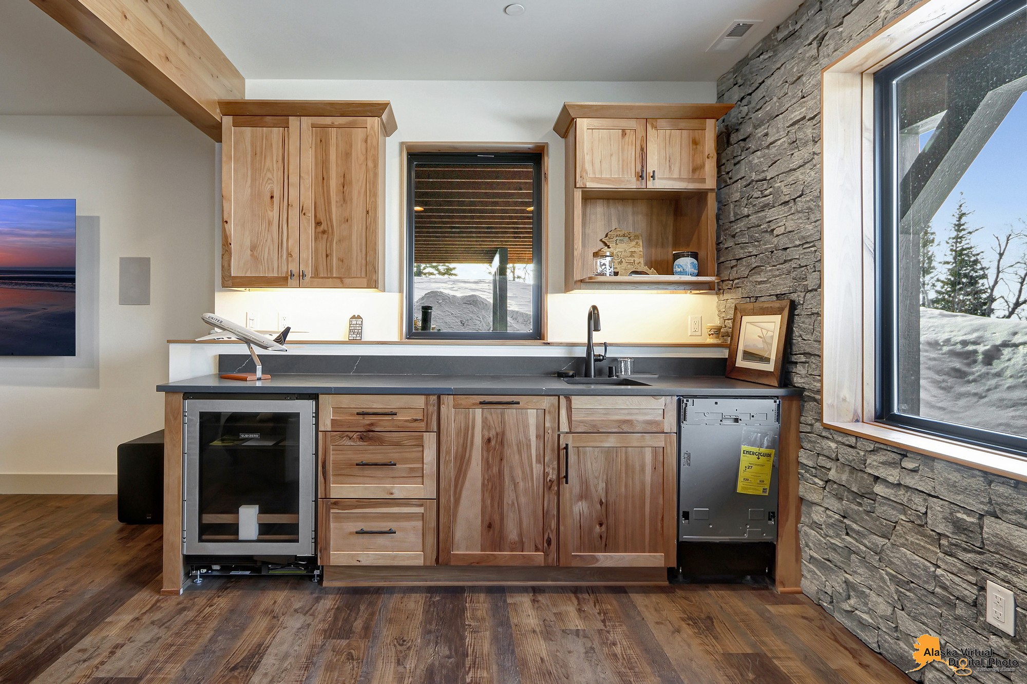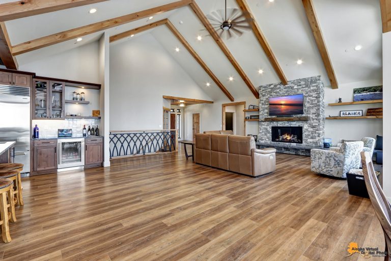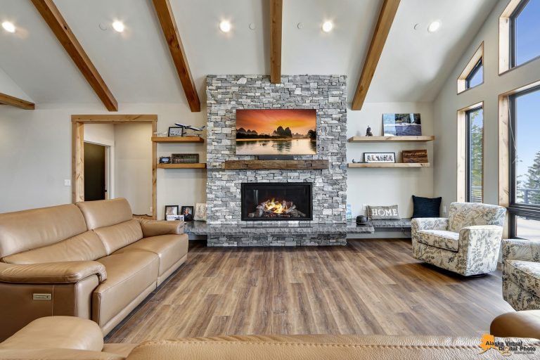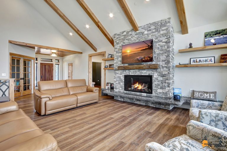 Local Stone Accents: Featuring real stone sourced from the historical goldmining town of Hope, AK, adding a piece of Alaskan history to every room.