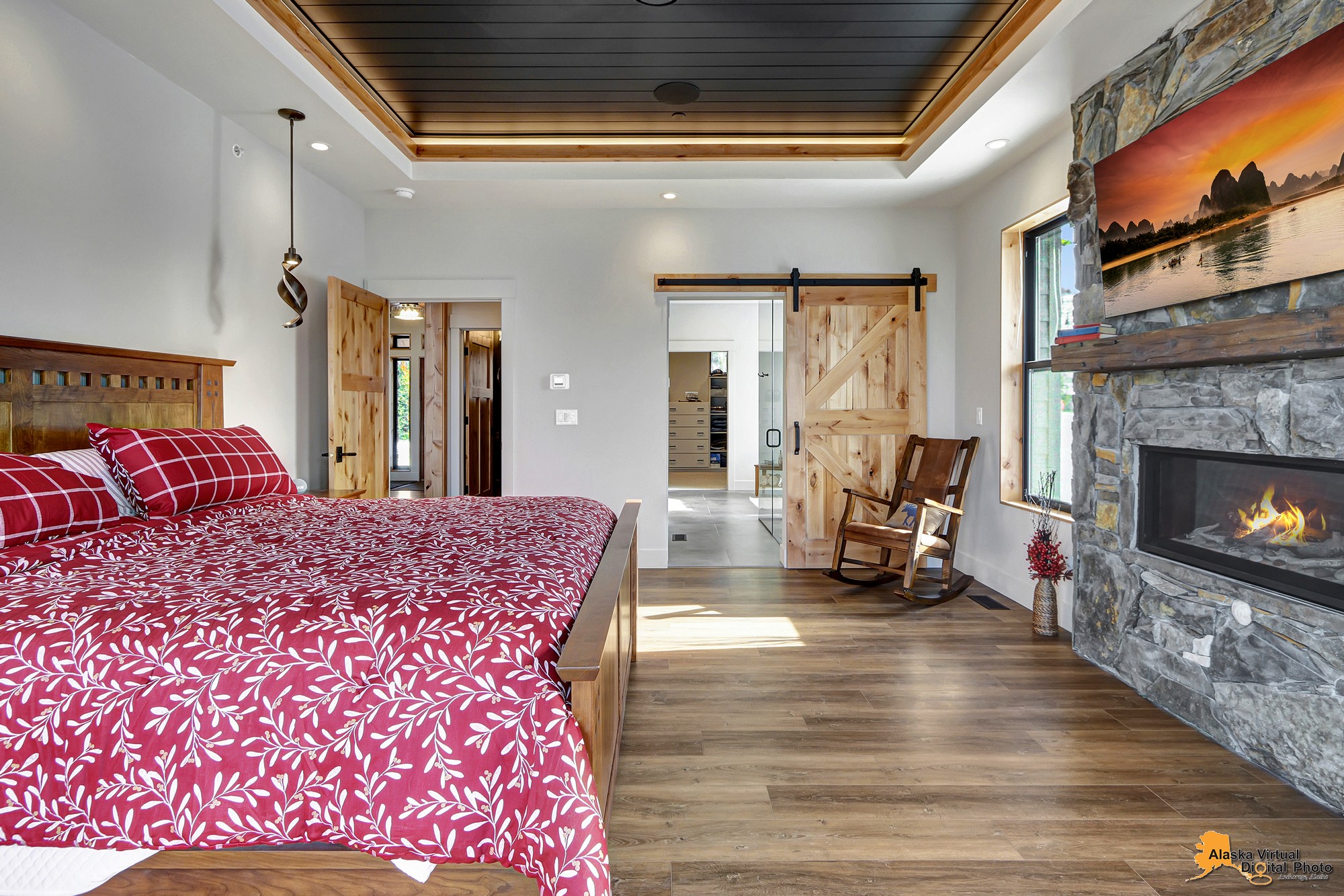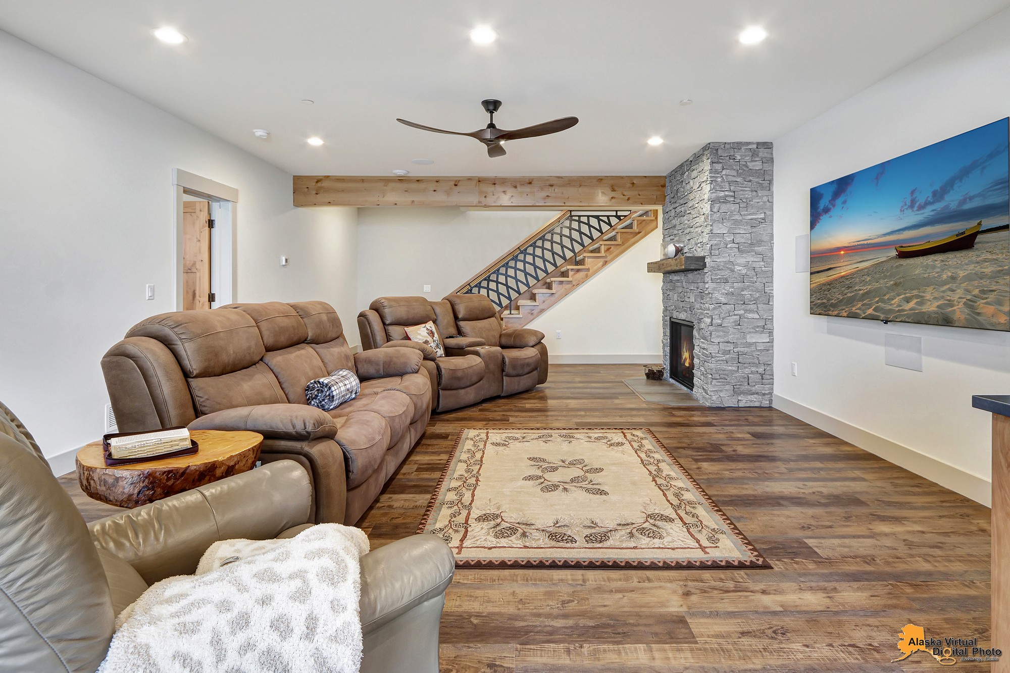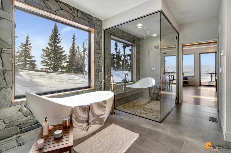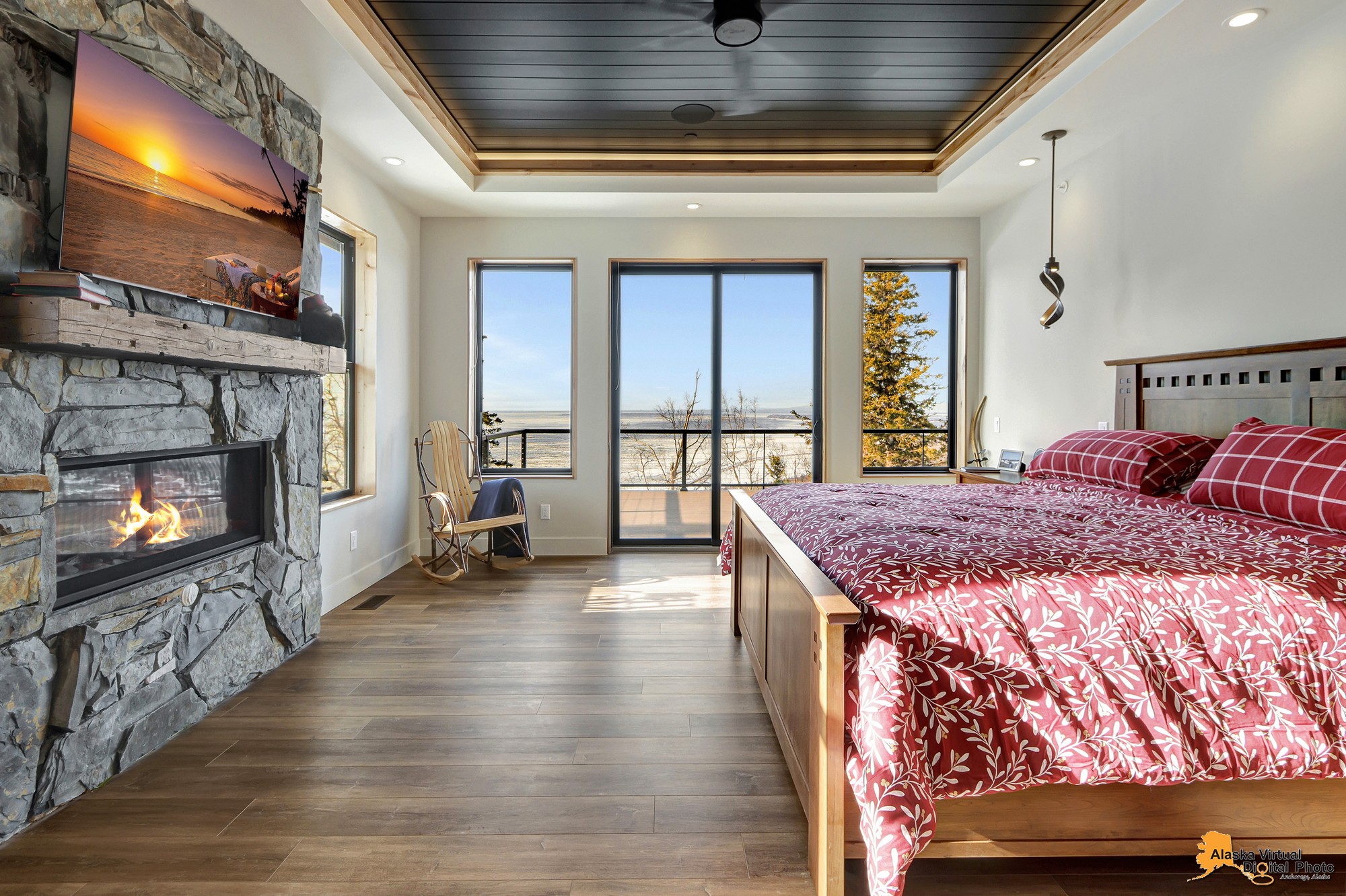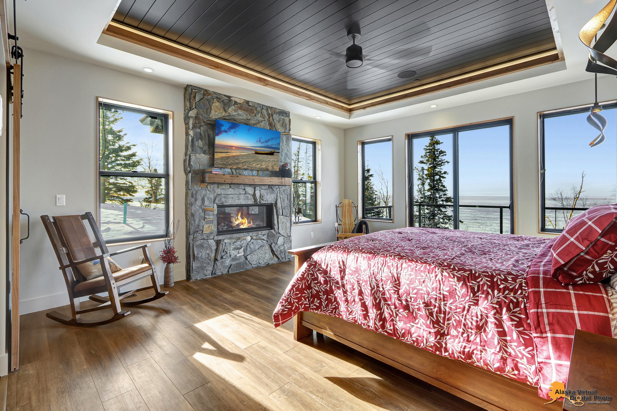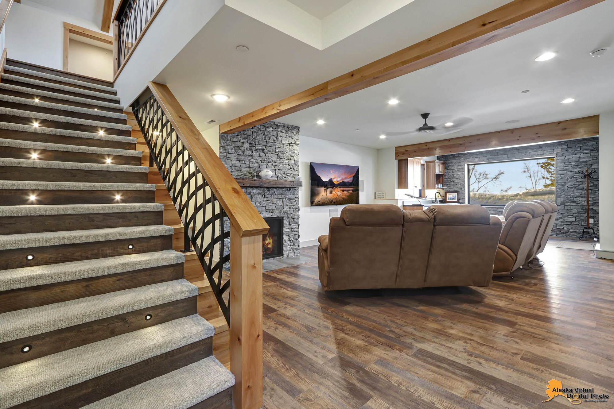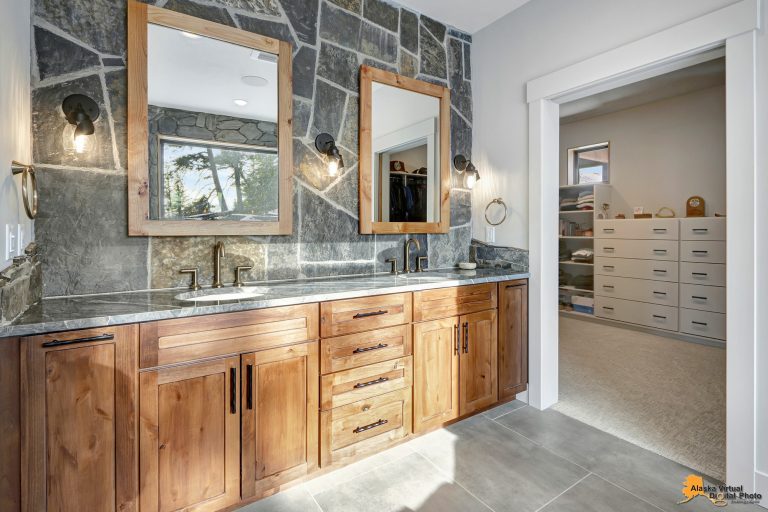 Local Stone Accents: Featuring real stone sourced from the historical goldmining town of Hope, AK, adding a piece of Alaskan history to every room.