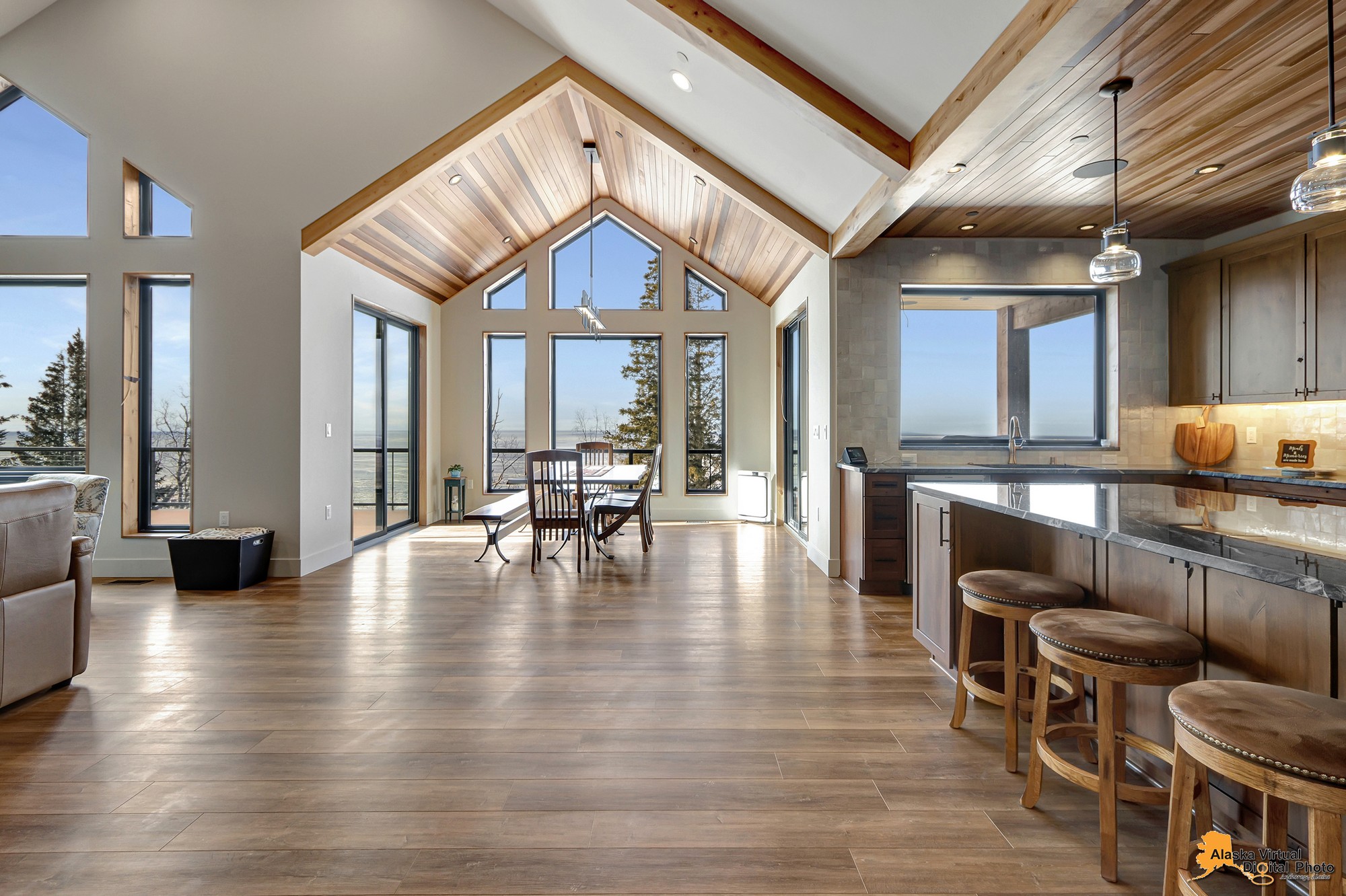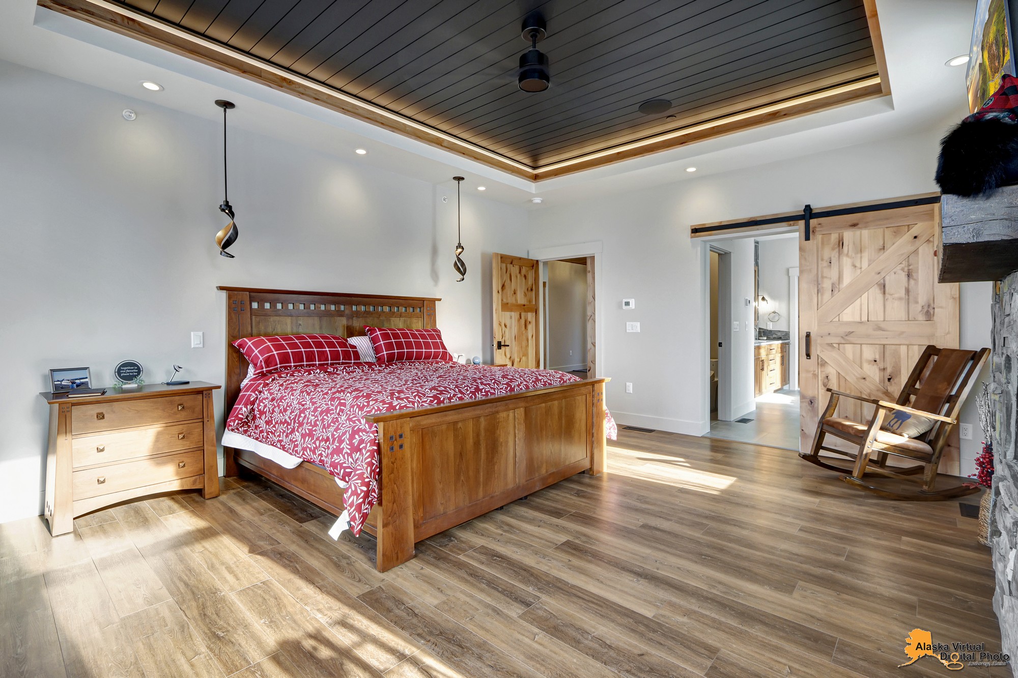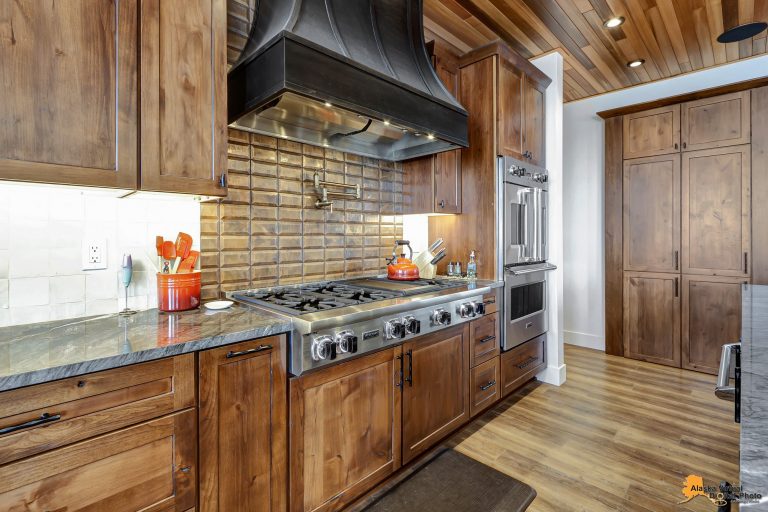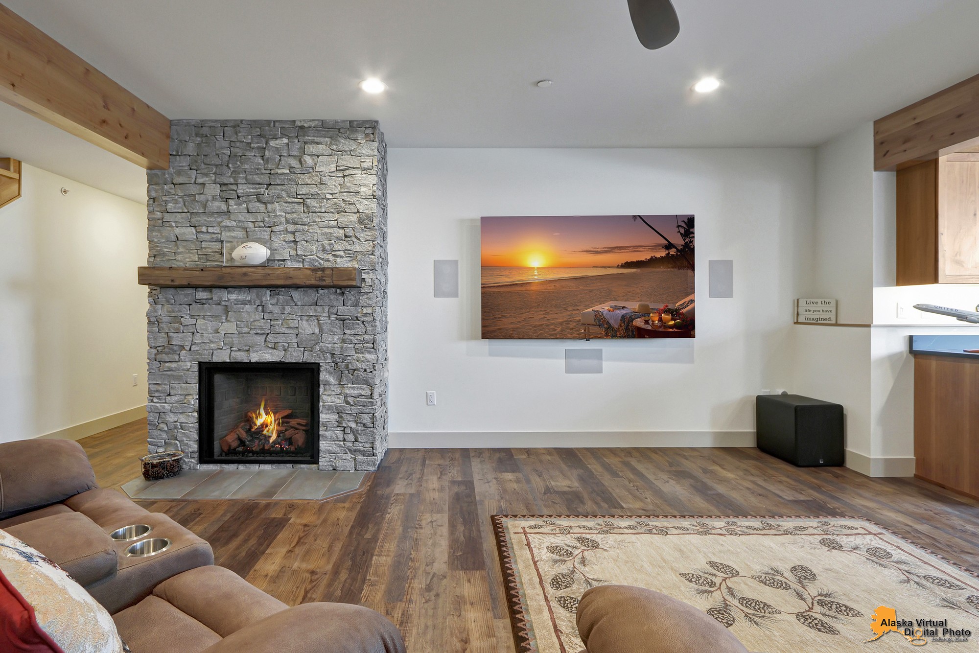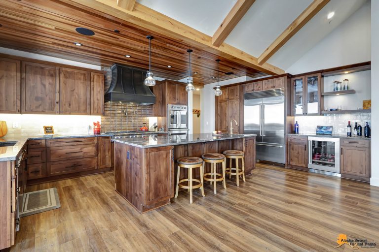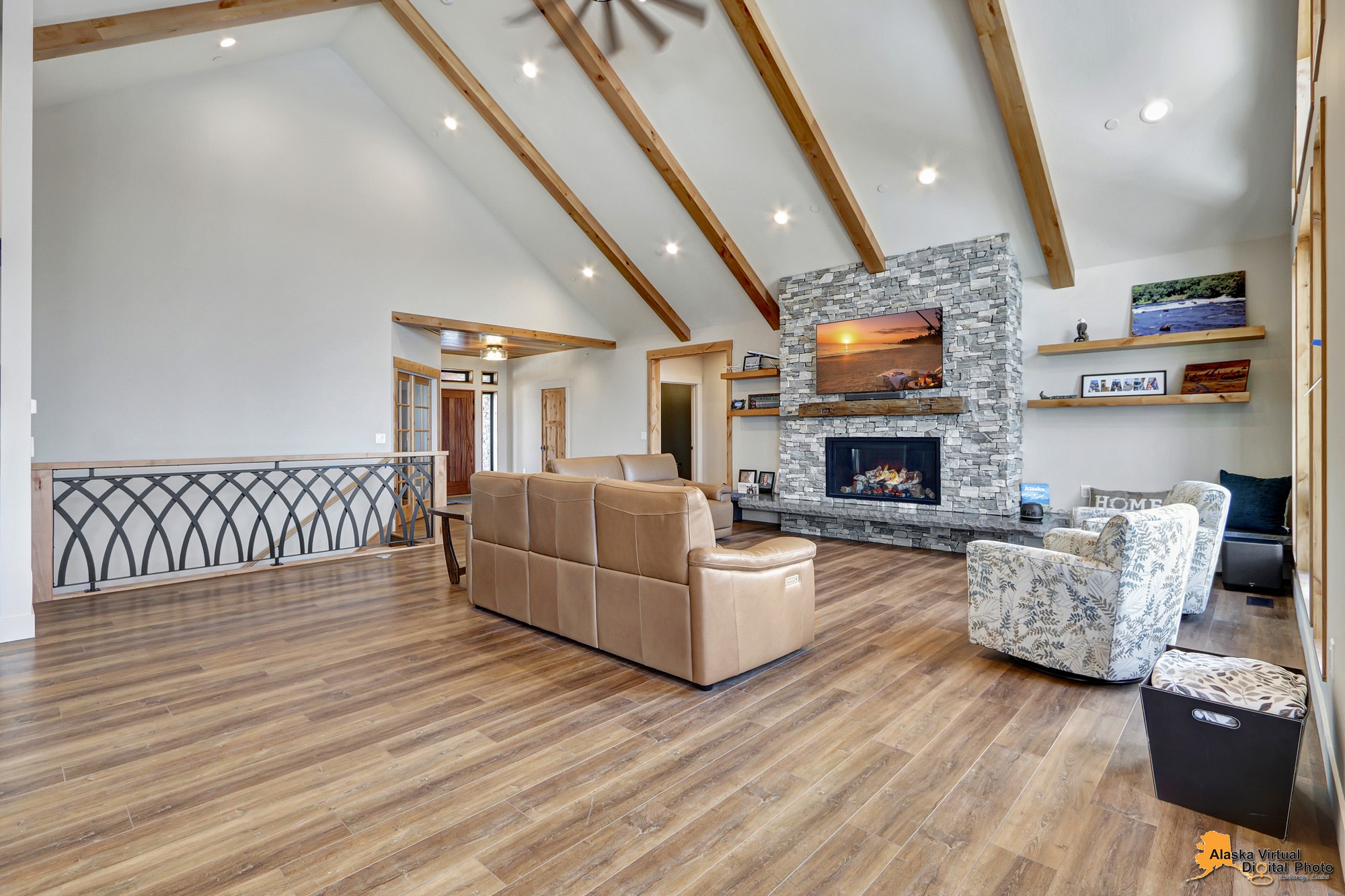 Local Stone Accents: Featuring real stone sourced from the historical goldmining town of Hope, AK, adding a piece of Alaskan history to every room.