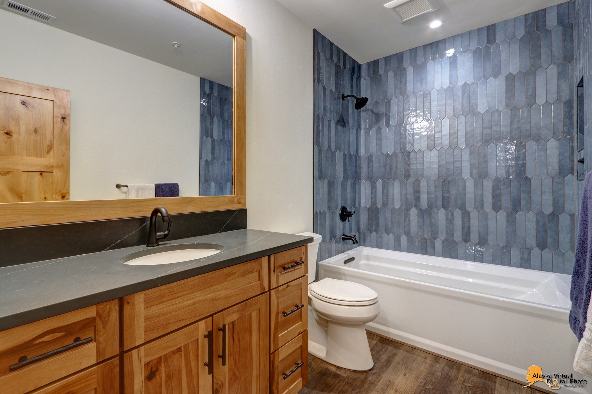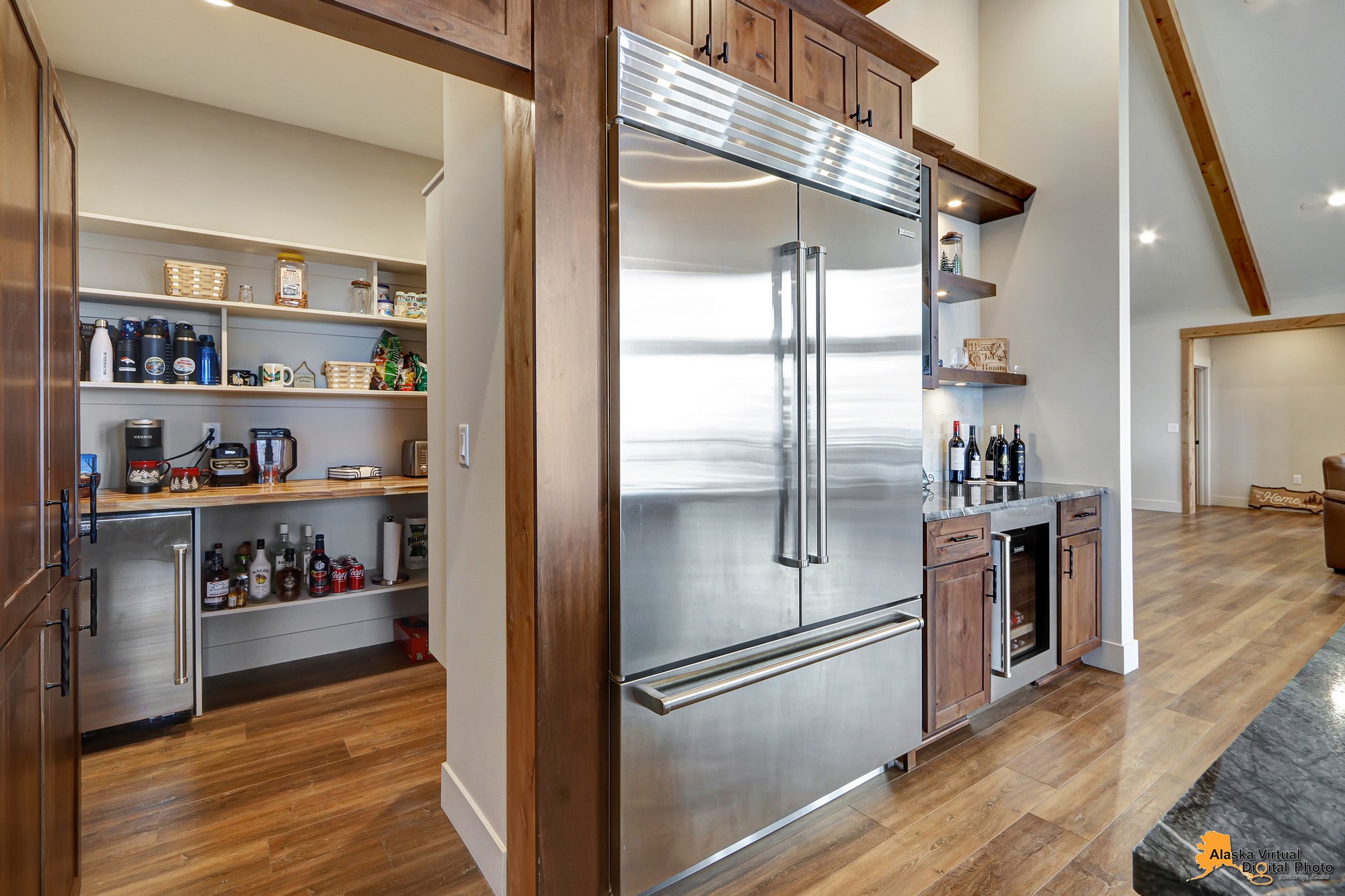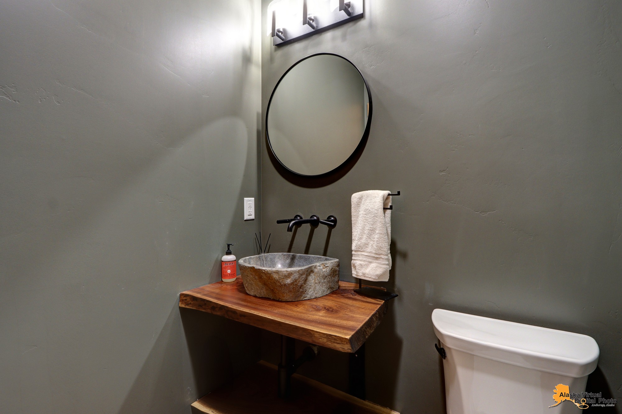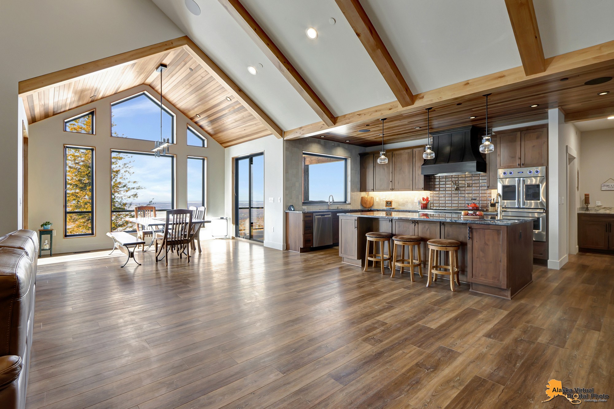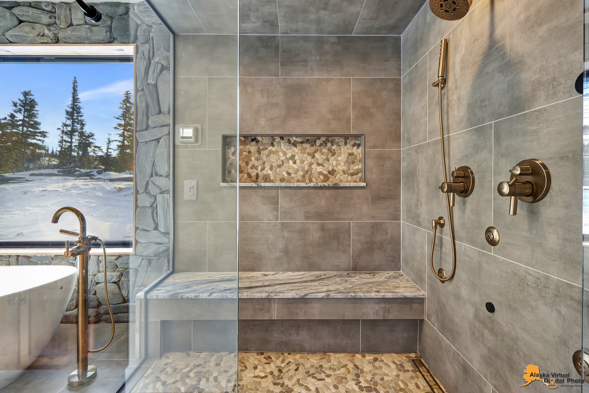 Local Stone Accents: Featuring real stone sourced from the historical goldmining town of Hope, AK, adding a piece of Alaskan history to every room.