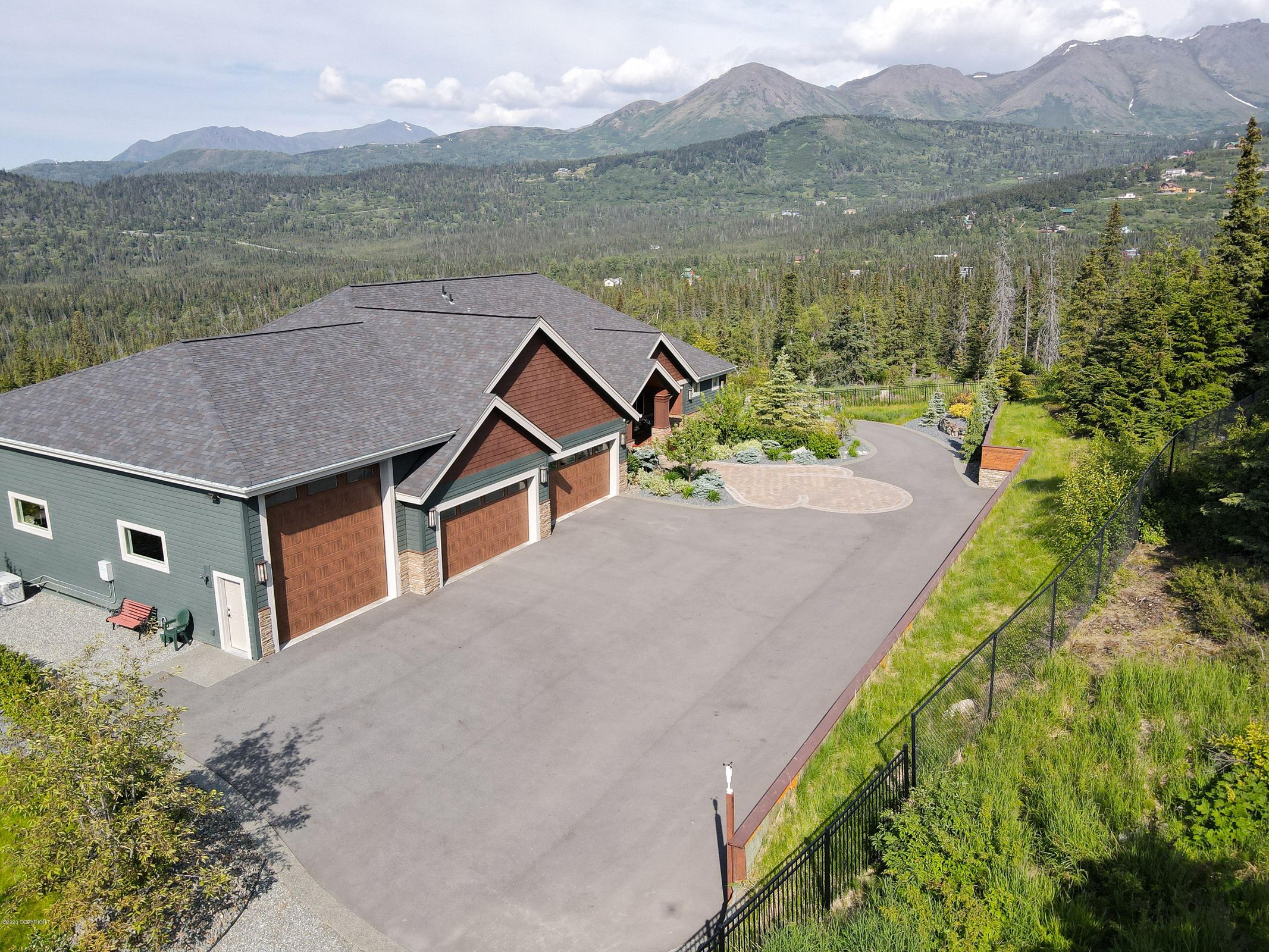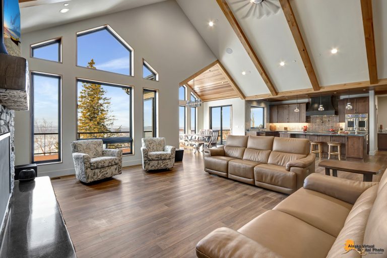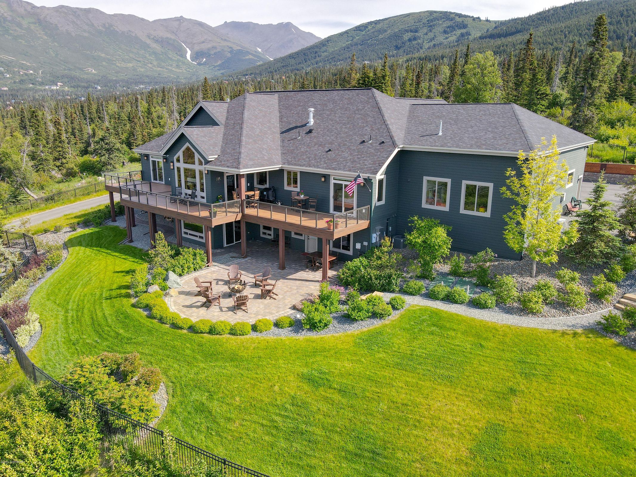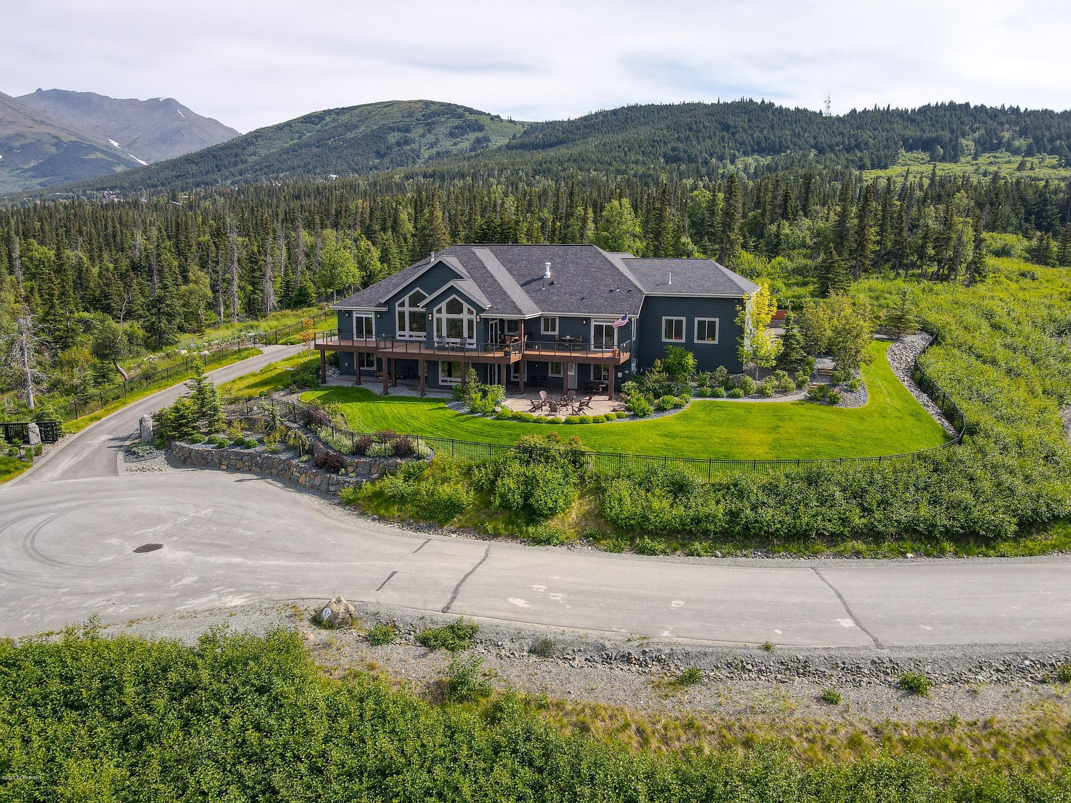 Nestled in the pristine mountains above Anchorage, this exquisite custom-built home is the fulfillment of a lifelong dream, offering a perfect blend of off-the-grid luxury with the convenience of city amenities. It’s a haven where every detail echoes the grandeur of Alaska, from local historical touches to modern luxuries, creating a living experience that's simply unparalleled.